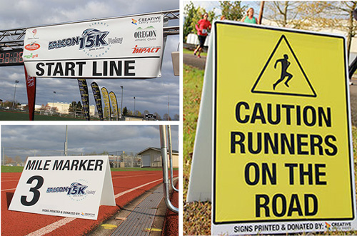 Creative Safety Supply provided the Custom Signs to let the runners know where to run and produced a banner for the start/finish line. The signs and banners will now be available for the group to continue safe training sessions for years to come and future races.