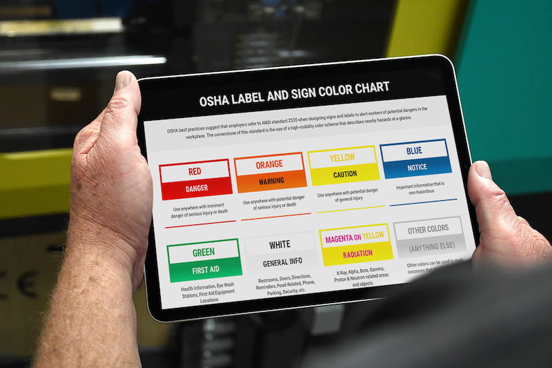 Recognize hazard signs at a glance with a free chart of OSHA's sign and label color scheme.
